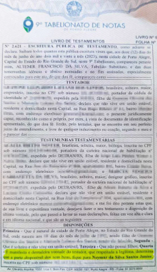 Imagine deixar todos os seus bens para uma pessoa famosa? Pois é, um homem, de 30 anos, revelou ao Metrópoles que oficializou o seu testamento e deixará tudo o que conquistou para Neymar Jr. Ele ainda explicou que não está bem de saúde e que se identifica muito com o craque, principalmente com a relação dele com o pai. Confira o documento, registrado em cartório, na imagens abaixo.
