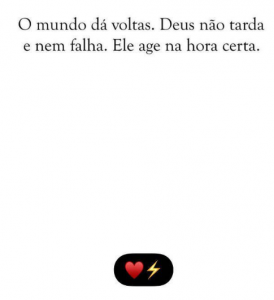 “O mundo dá voltas. Deus não tarda e nem falha. Ele age na hora certa”, declarou Caio, sem dar maiores explicações.