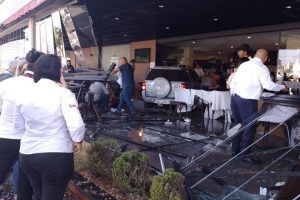 Um carro invadiu restaurante no início da tarde de hoje (19/07), no Jardim Goiás em Goiânia. Diversas pessoas almoçavam no local. De acordo com o Corpo de Bombeiros, equipes foram acionadas para atender 11 vítimas. Duas estavam inconscientes e todas as outras com escoriações.