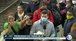 O repórter estava em uma estação de trem em Osasco e passava informações sobre problemas enfrentados nas linhas 8-Diamante e 9-Esmeralda, da CPTM (Companhia Paulista de Trens Metropolitanos), durante o dia. Os trechos são administrados pela empresa ViaMobilidade.
