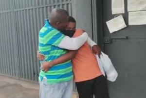 Edvaldo deixou o presídio no dia 21/1 e foi recepcionado por um filho e pela esposa do lado de fora. A família estava bastante emocionada com a saída dele da prisão.